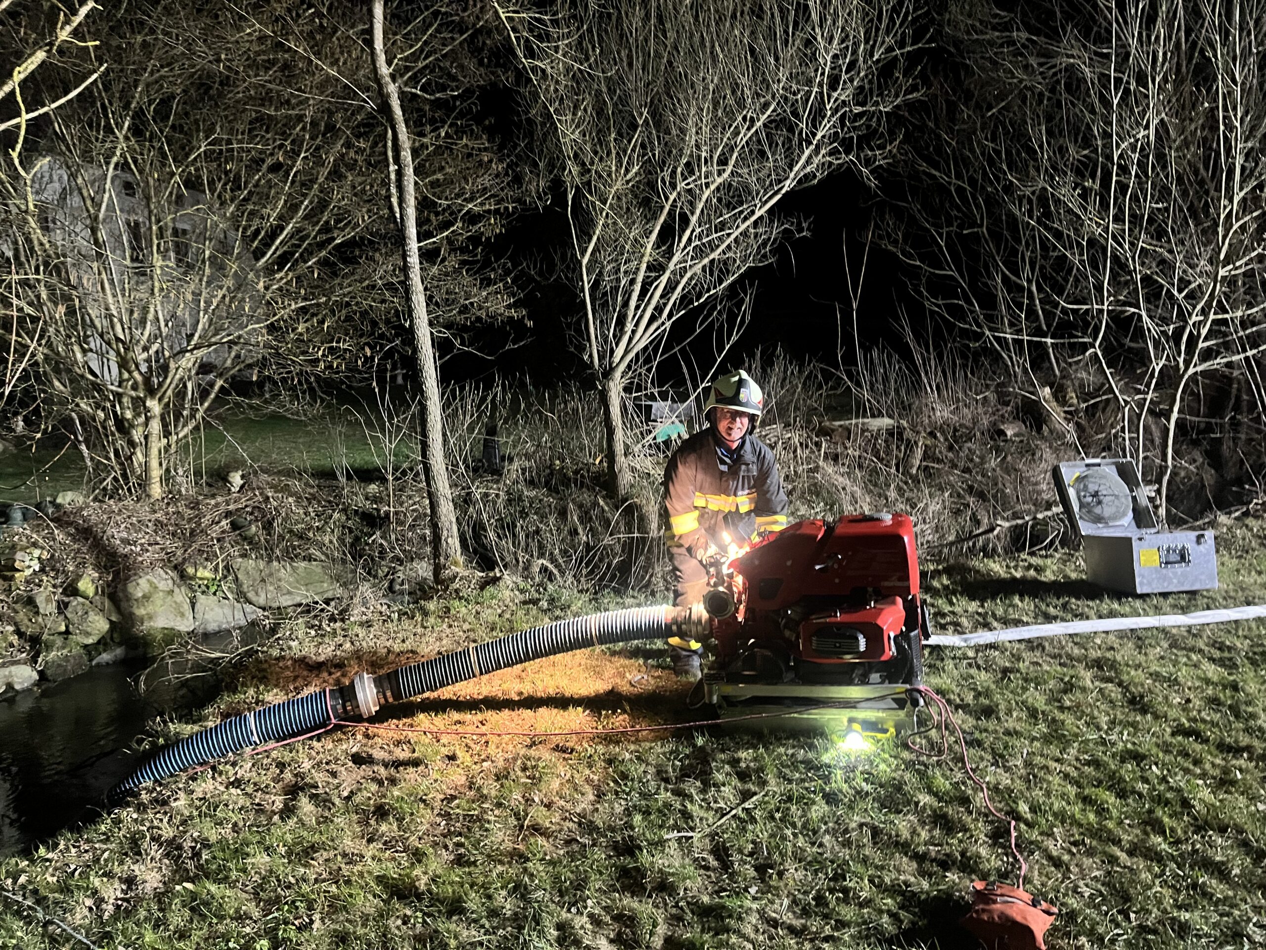 Der Atemschutztrupp bereitete sich unverzüglich vor in das Gebäude vorzudringen, um die Personen zu retten. Währenddessen machte sich ein weiterer Teil der Mannschaft auf den Weg zur kleinen Rodl um eine Löschwasserversorgung herzustellen.